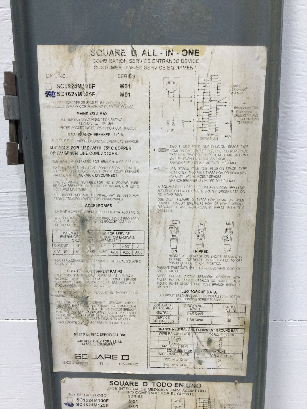 Square D SC1624M125F 125 Amp 120/240V Panel Cover Only 25 1/4" X 7"