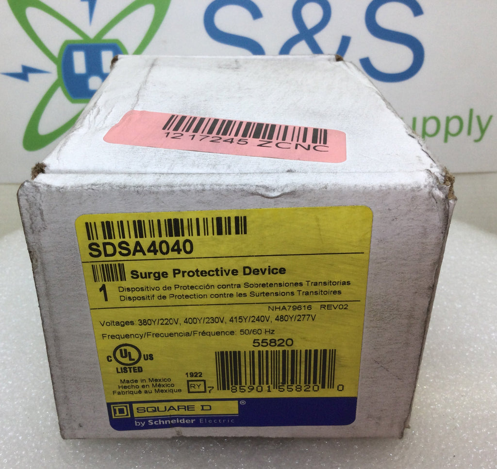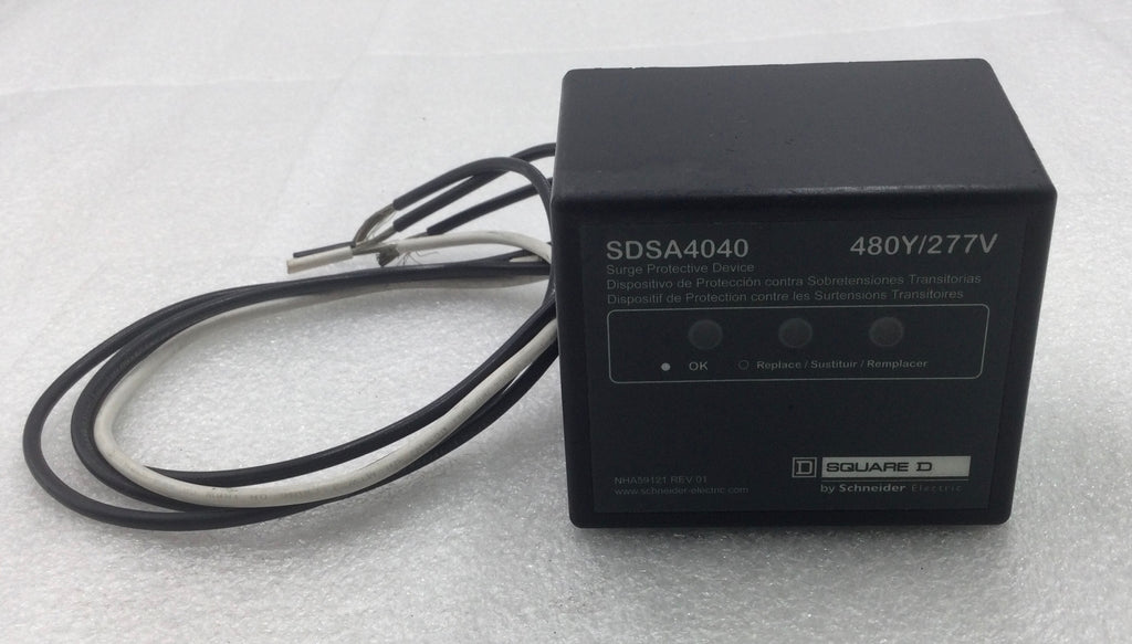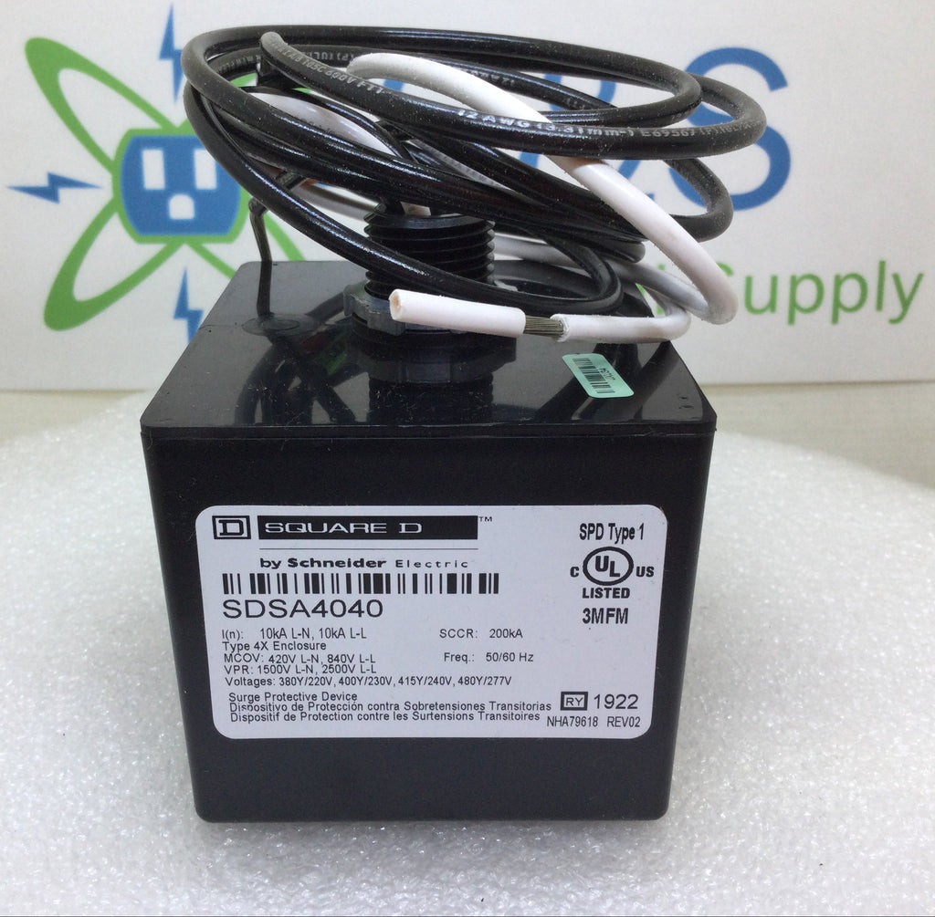 The Square D SDSA4040 is a surge protective device designed to shield electrical systems from transient voltage spikes and power surges. This industrial-grade unit safeguards equipment and reduces downtime risk in commercial and facility applications.