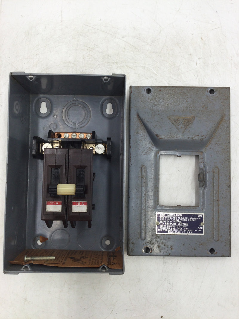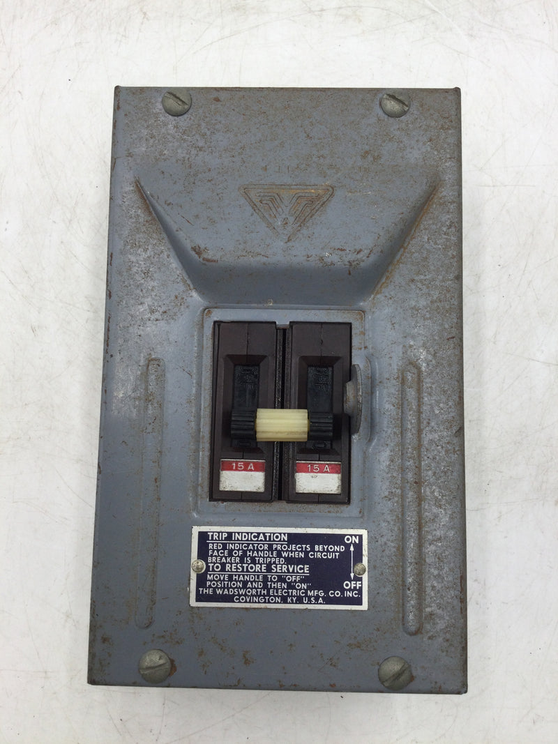 Wadsworth 402S/F Circuit Breaker Enclosure w/2 Single Pole 15 Amp Breakers