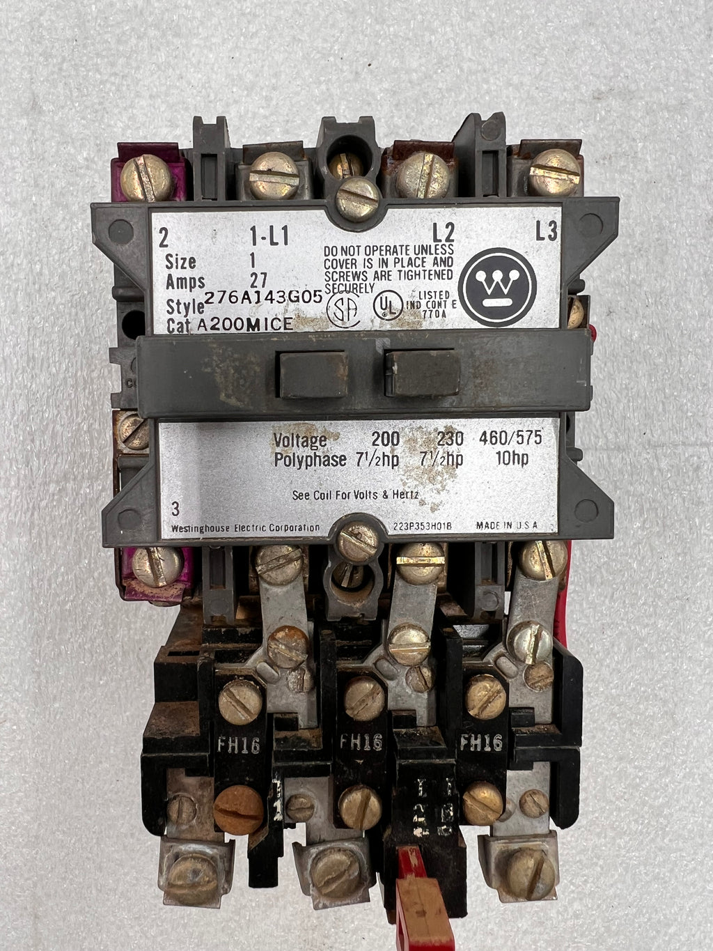 Westinghouse Motor Control A200MICE Size 0 18 Amp 3 Phase 460/575v @10Hp Contactor A200MICE Nema Size 2 3 Phase 460/575v @10Hp Contactor