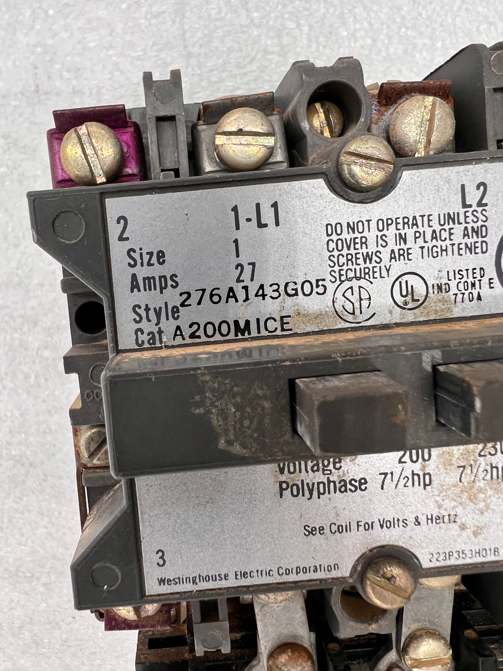 Westinghouse Motor Control A200MICE Size 1 11 Amp 3 Phase 460/575v @10Hp Contactor