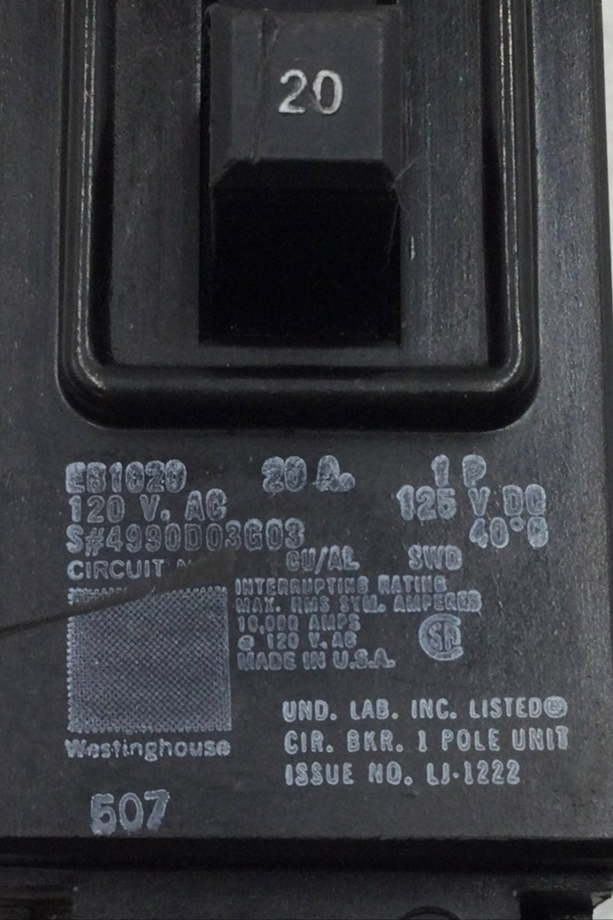 Westinghouse EB1020 20 Amp 1 Pole 120V Circuit Breaker