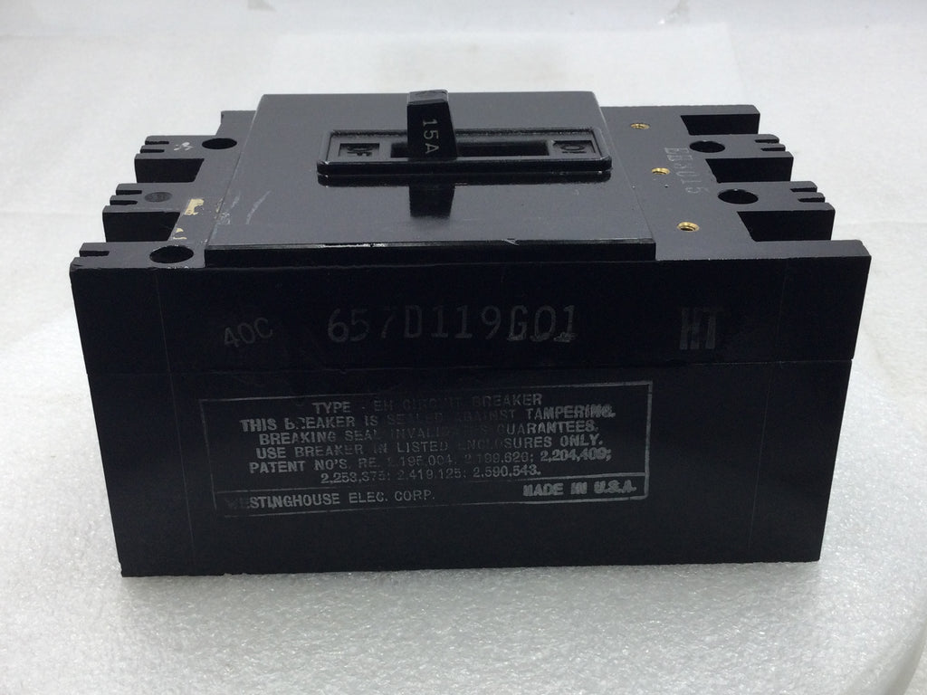 Westinghouse EH3015 15 Amp 3 Pole 480V Circuit Breaker - Cosmetic Flaw