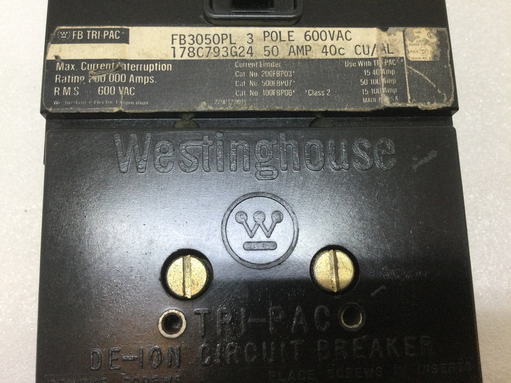 Westinghouse FB3050PL 50 Amp 3 Pole 600V Type FB Tri-Pac Breaker - Cosmetic Flaw