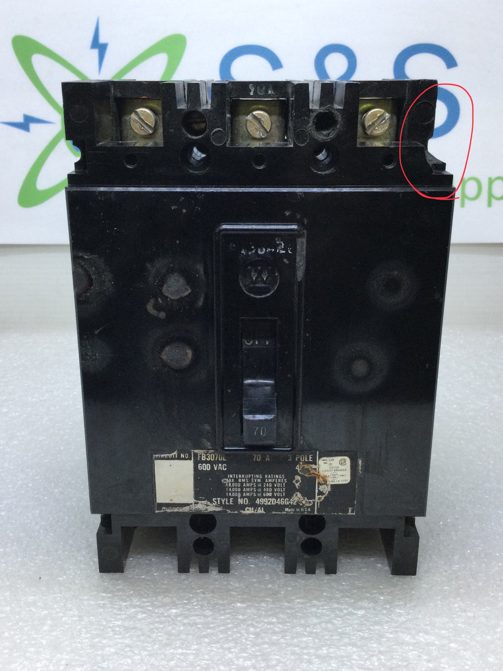 Westinghouse FB3070L 70 Amp 3 Pole 600V Circuit Breaker - Cosmetic Flaw