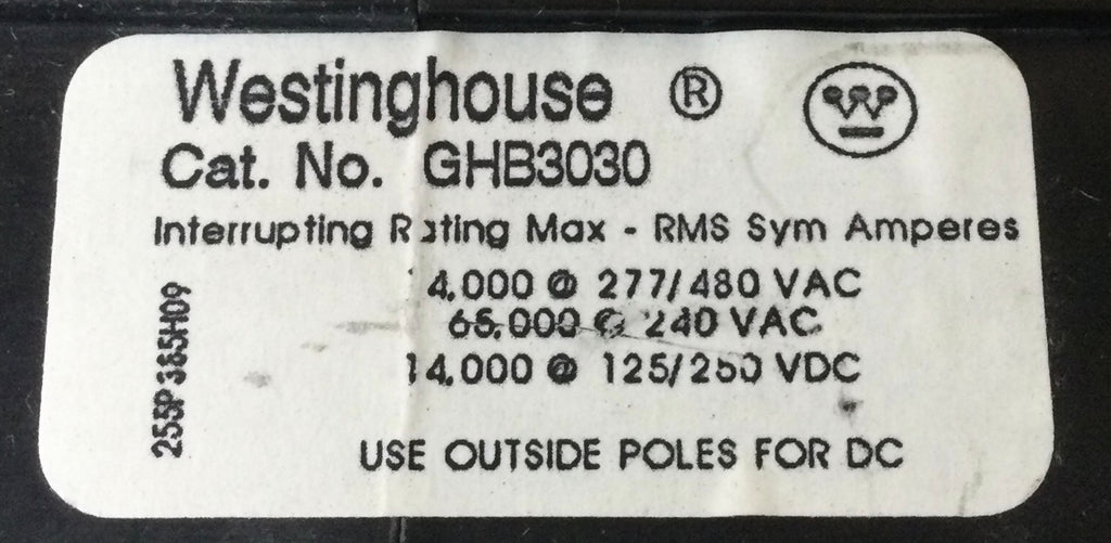 Westinghouse GHB3030 30 Amp 3 Pole 277/480V Bolt on Circuit Breaker