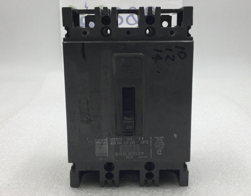 Westinghouse HFB2020 20 Amp 2 Pole 600V Type HFB Circuit Breaker