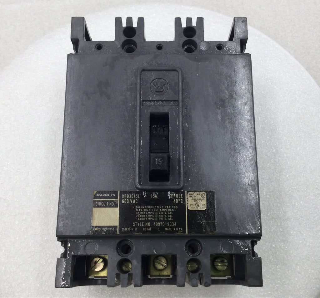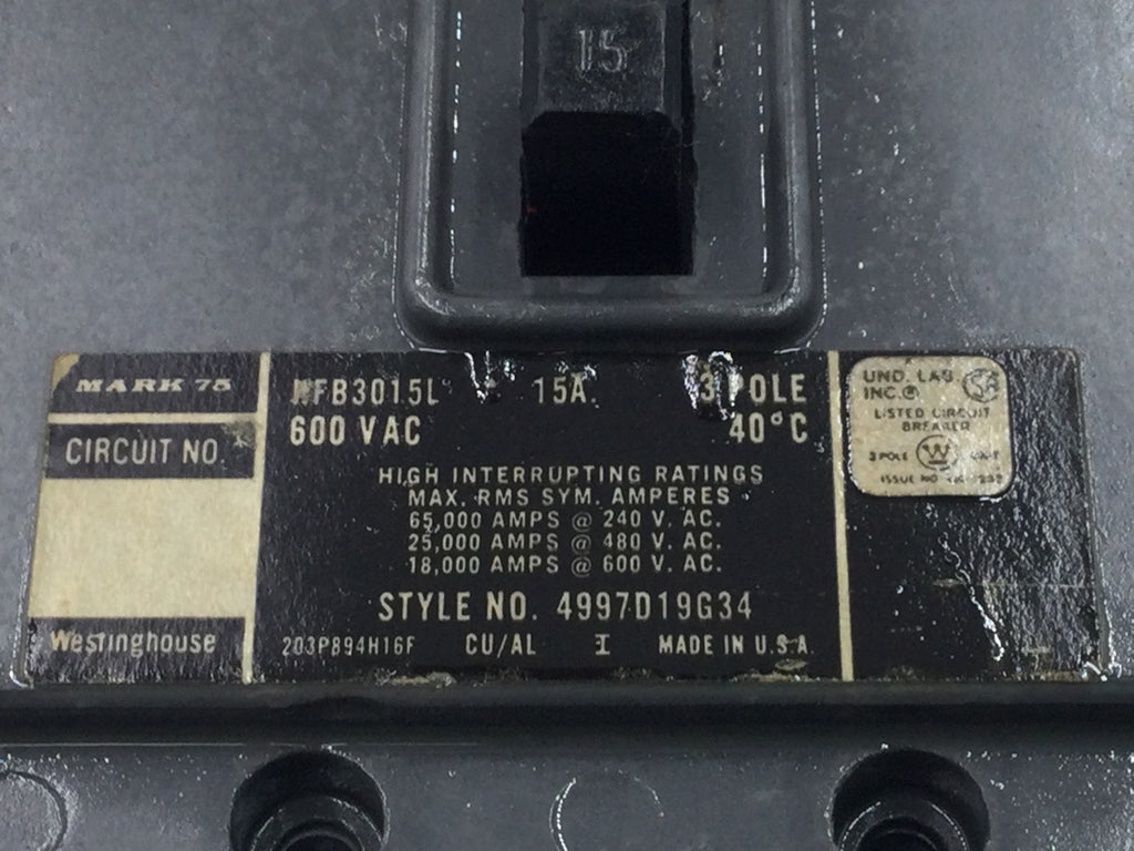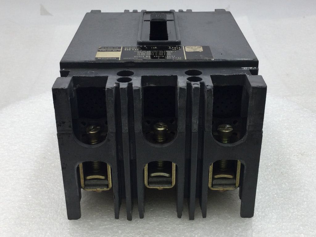 Westinghouse HFB3015L 15 Amp 3 Pole 600V Type HFB Circuit Breaker