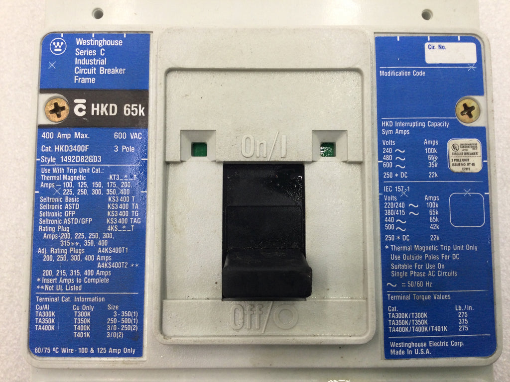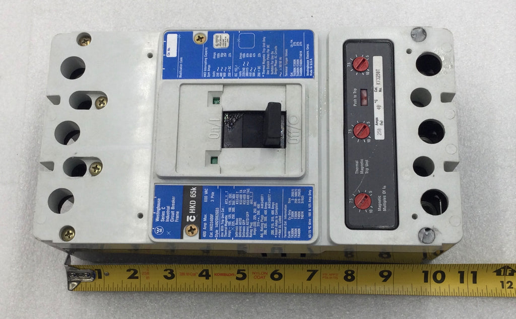 Westinghouse HKD3400F 400 Amp 3 Pole 600V Circuit Breaker w/KT3250T Amp Trip