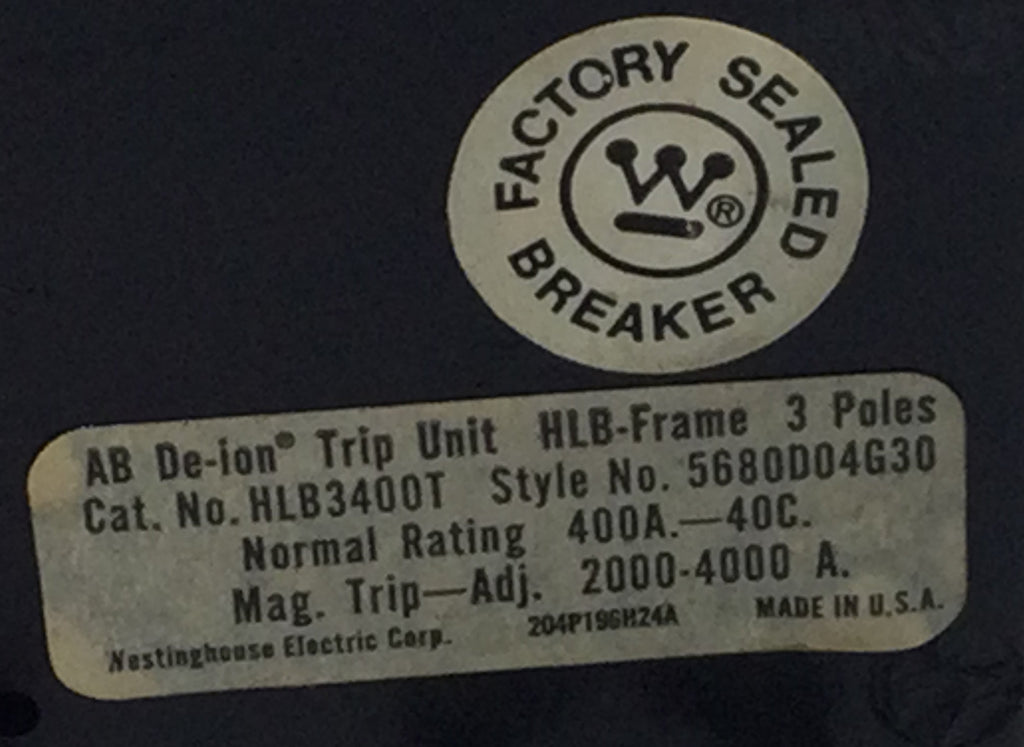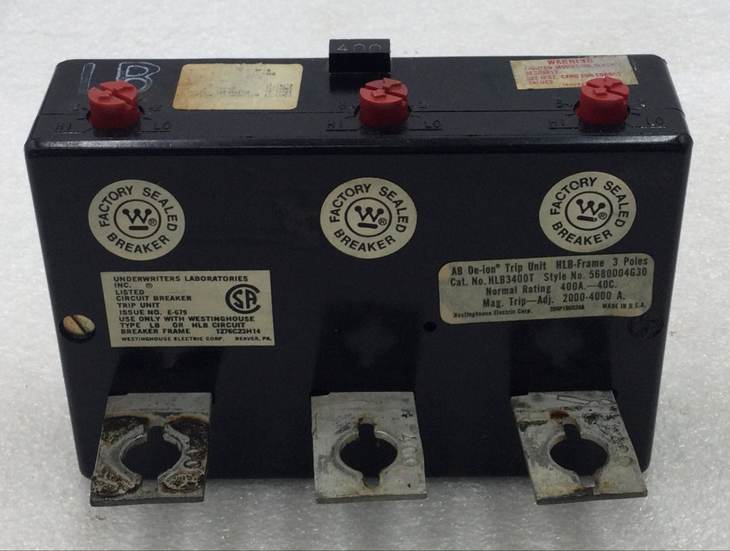 Westinghouse HLB3400T 400 Amp 3 pole Amp Trip Unit 5" x 4 1/4"