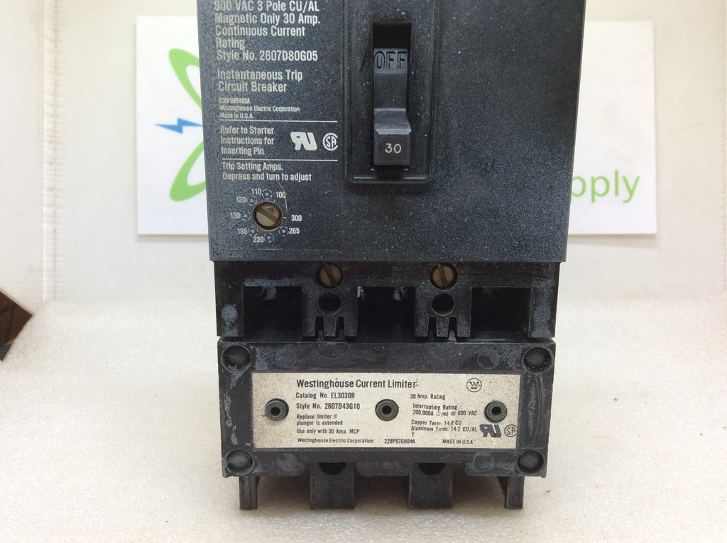 Westinghouse MCP13300RC 30 Amp 3 Pole 600V Circuit Breaker w/EL3030R Limiter