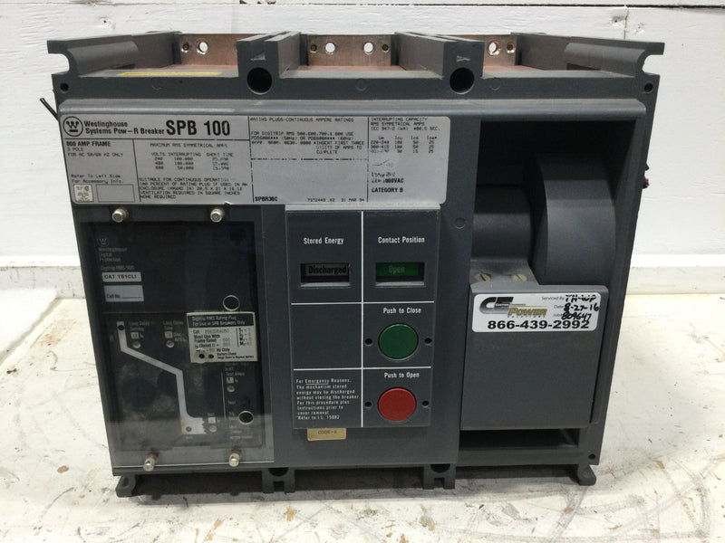 Westinghouse SPB100 800 Amp 3 Pole 600V Pow-R Breaker w/Shunt Trip 24VDC 8 Amp
