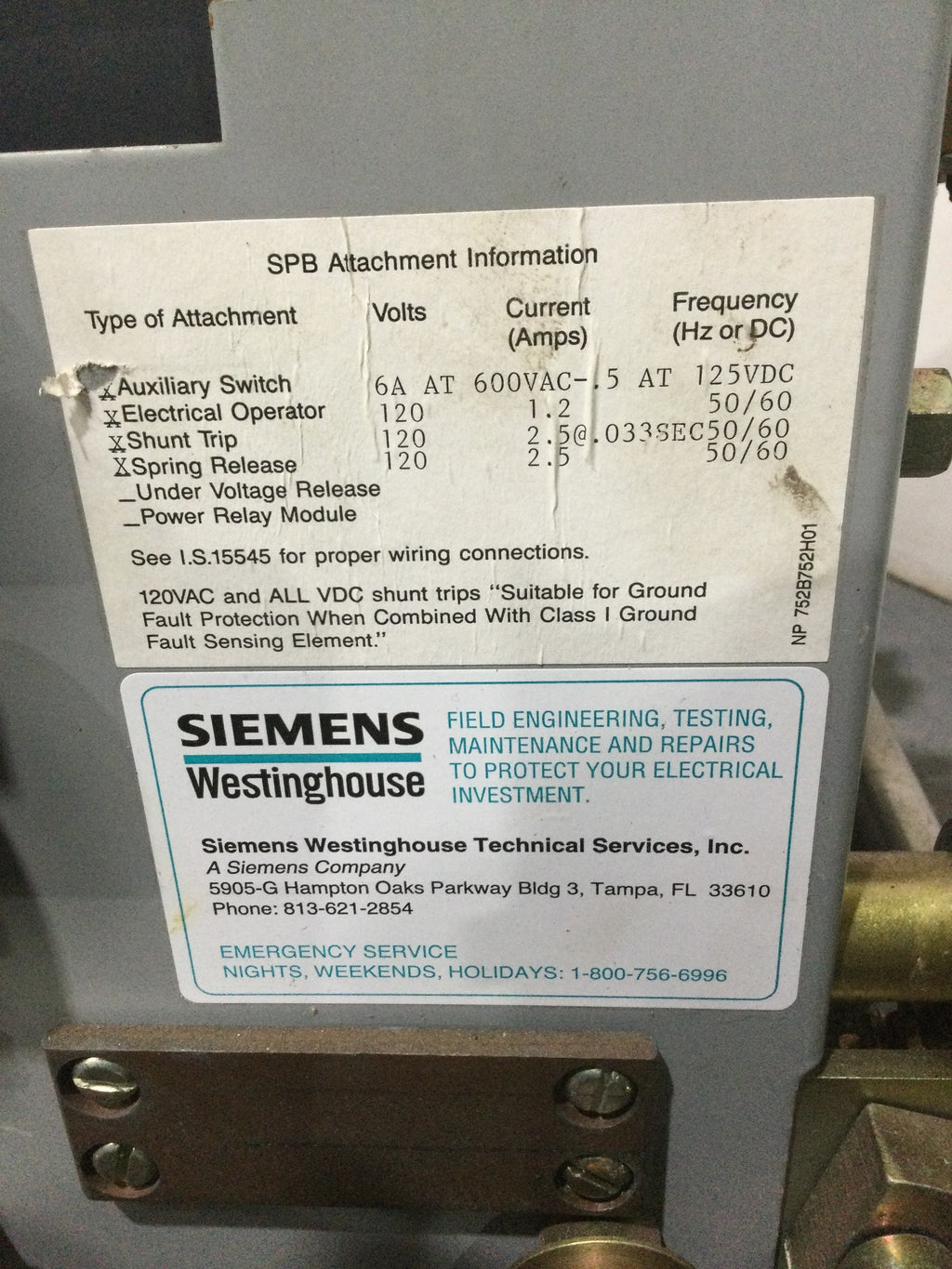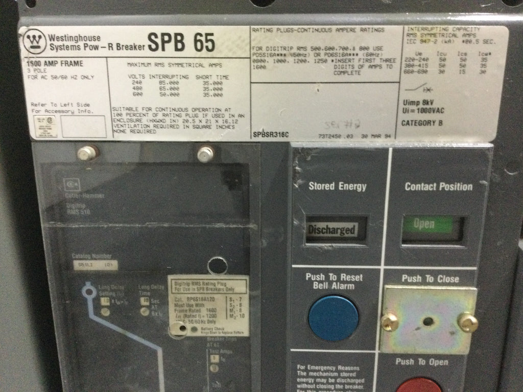 Westinghouse SPB65 1600 Amp 3 Pole 600V Pow-R Circuit Breaker
