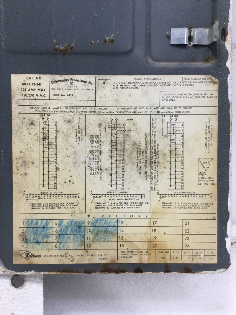 Zinsco ML12(12-24) 125 Amp 12 Space 120/240V Panel Door 21 1/4" x 10 7/8"