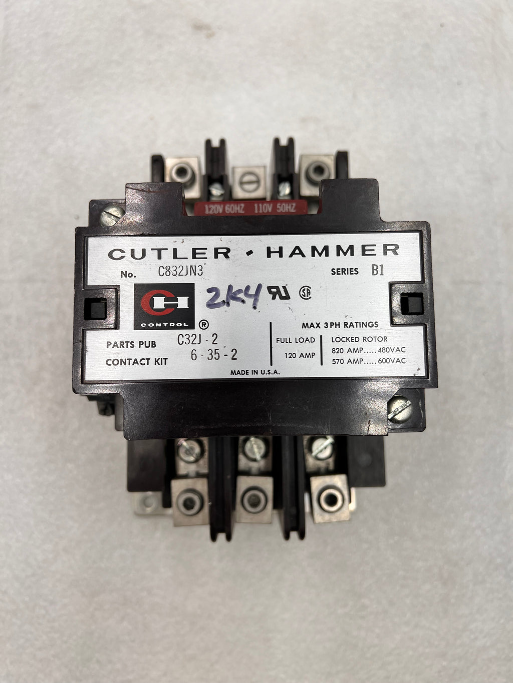 Cutler-Hammer C832JN3 Series C1 3 Phase 120A 600VAC Max Contactor This contactor series is designed to provide reliable and efficient power distribution for industrial applications. With a maximum voltage of 600VAC and a 120A capacity, it can handle the high demands of a 3-phase system with ease. It delivers powerful performance that is essential for any industrial setting. Trust in the Cutler-Hammer brand for top-notch quality and capability.