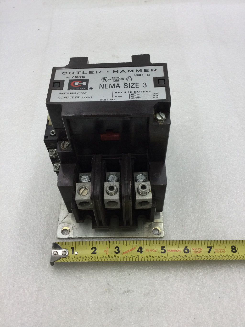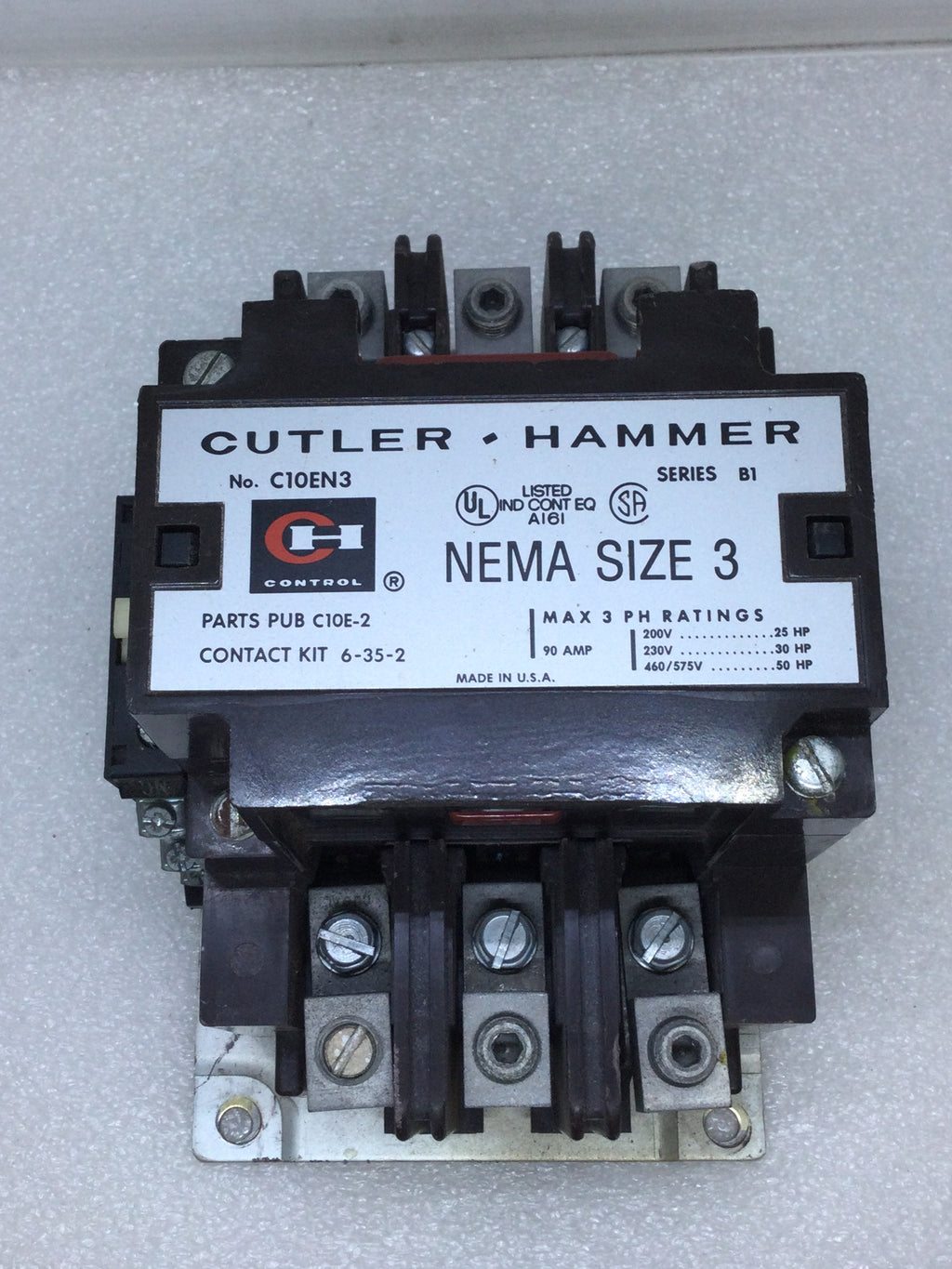 Cutler-Hammer C10EN3 90 Amp 3 Pole Nema Size 3 Contactor Coil 200-575 VAC 25-50 HP