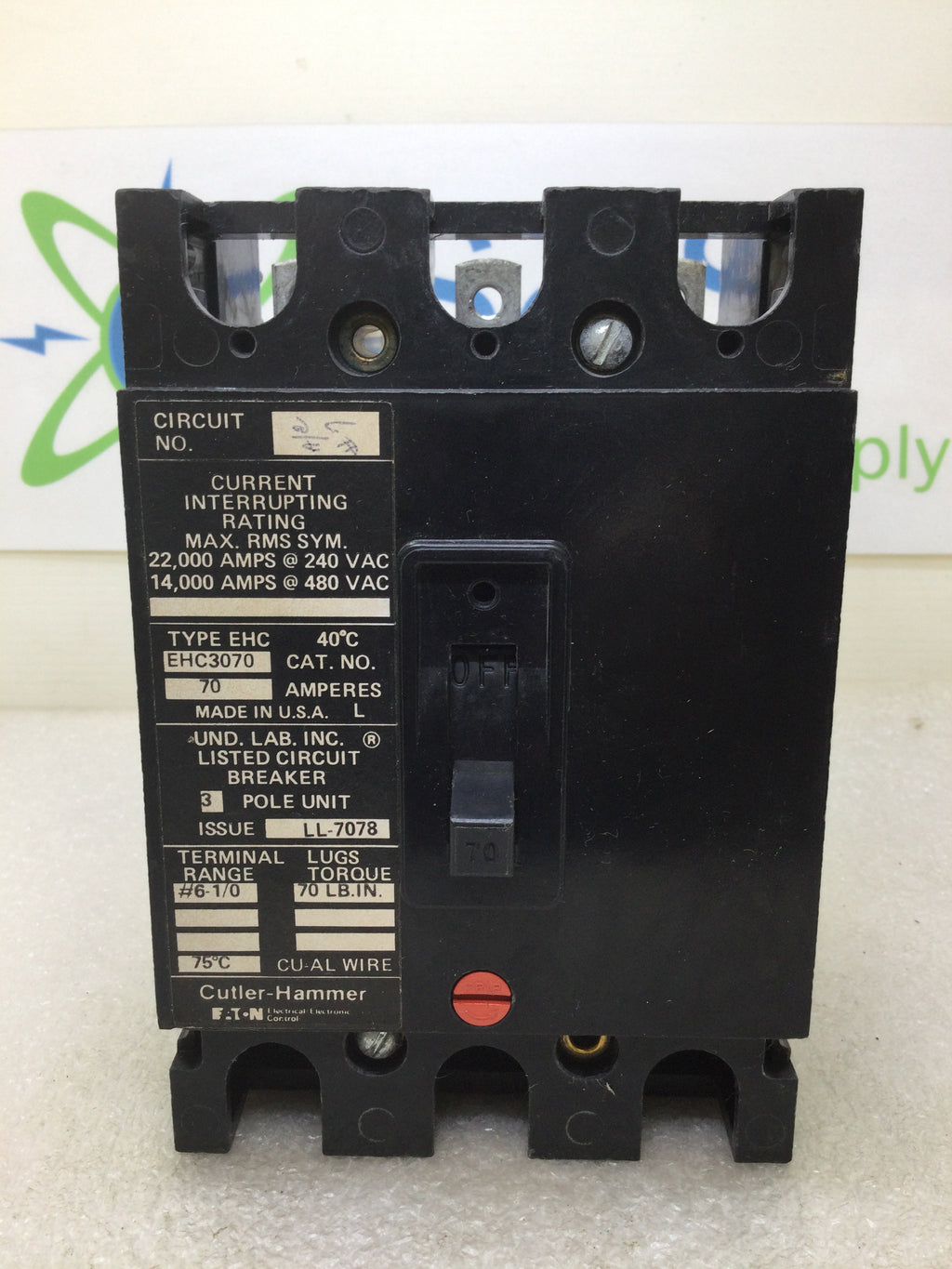 Cutler Hammer EHC3070 70 Amp 3 Pole 480Vac Circuit Breaker