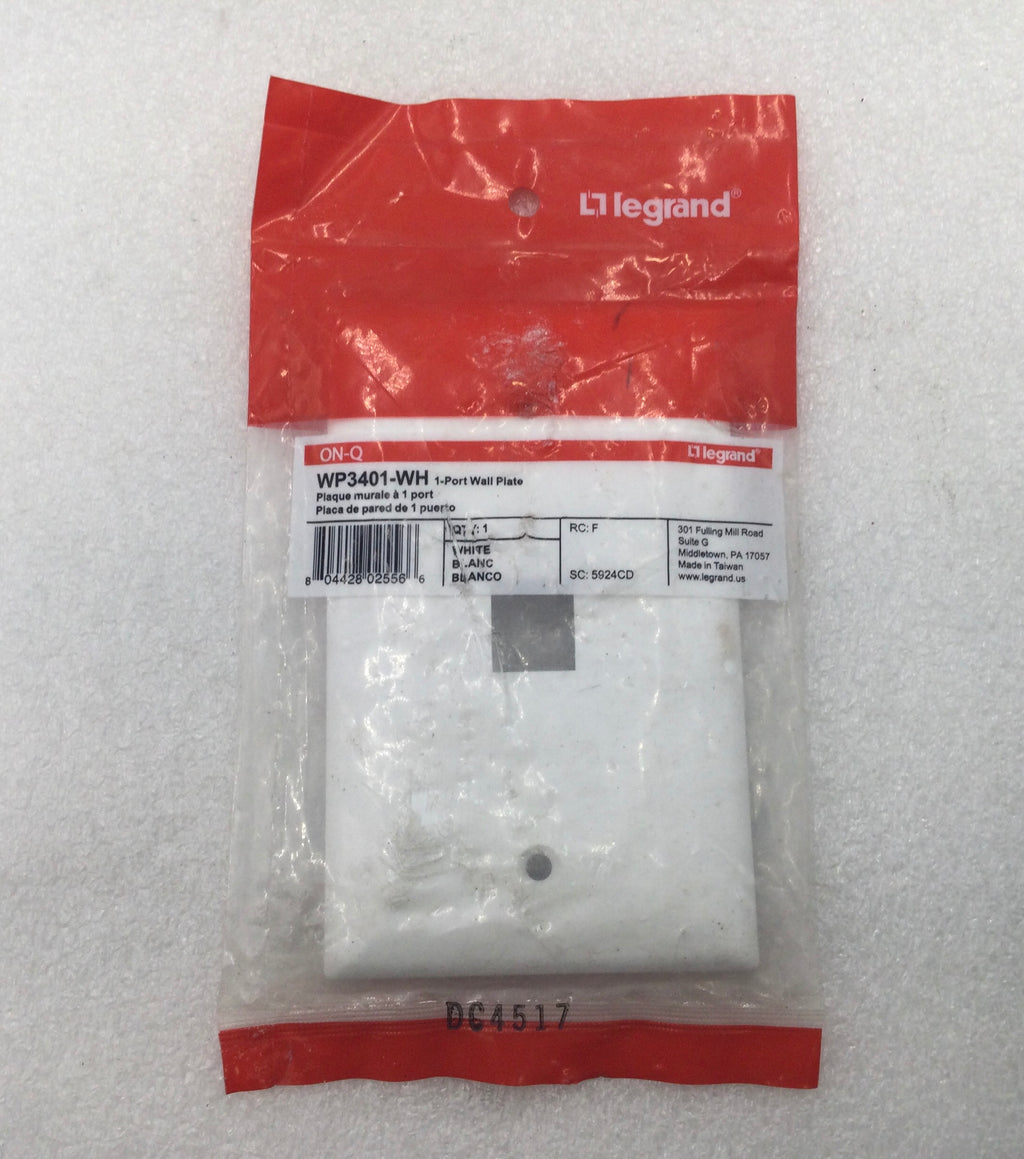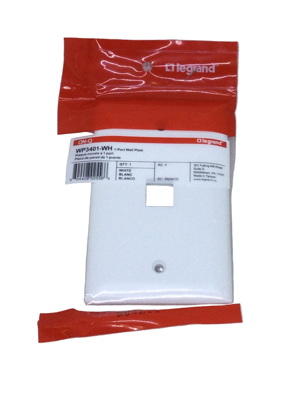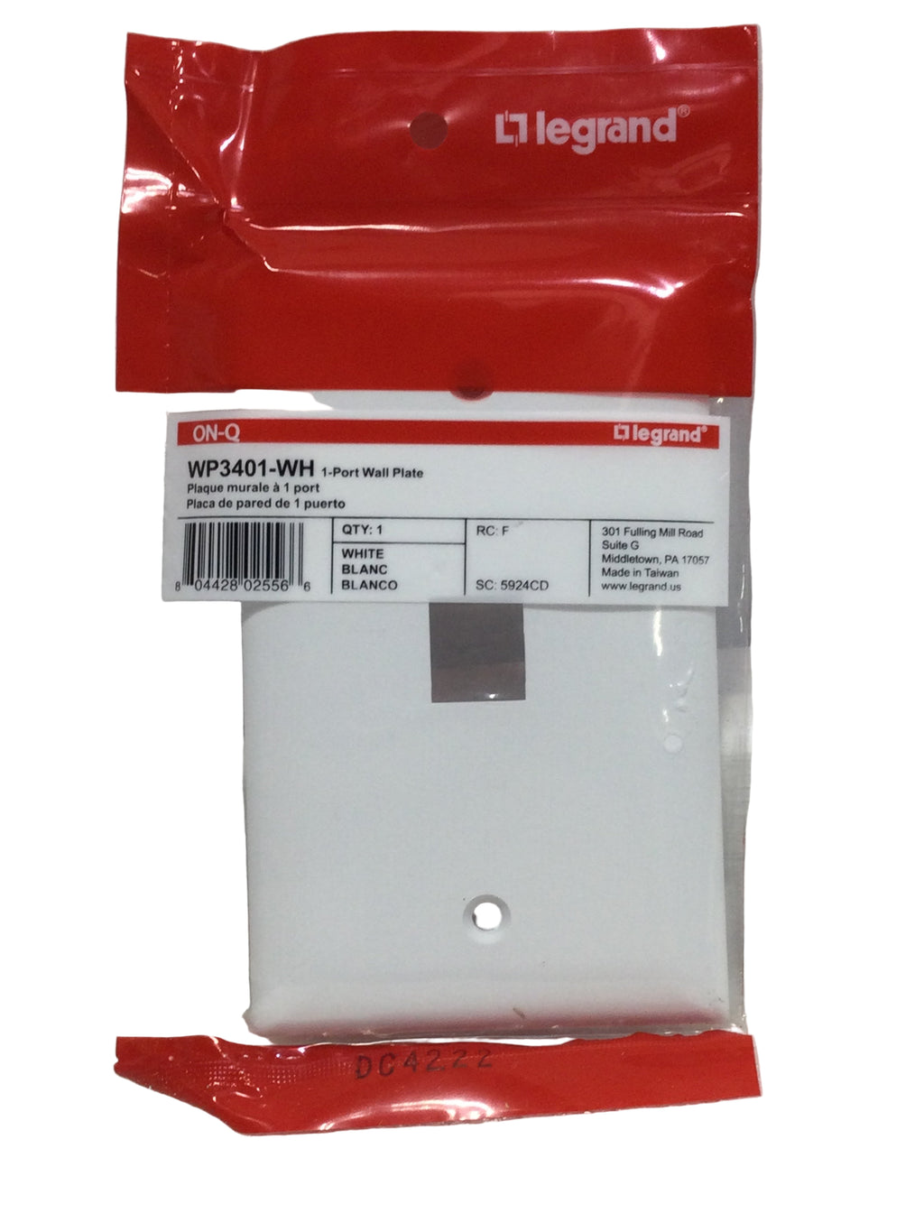 The Legrand WP3401-WH is a single-port white wall plate designed for a clean, professional finish in residential or commercial installations. Its durable construction ensures long-lasting support for your network or audio/video connections while maintaining a sleek, unobtrusive appearance. Ideal for organizing wiring and enhancing the aesthetics of any room.