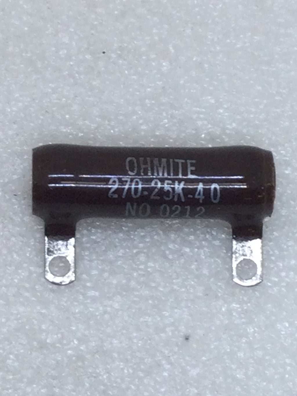 This Ohmite Mfg. Co. resistor is 25 watts and has a vitreous enameled coating. Its 5000 ohm resistance makes it ideal for high power applications.