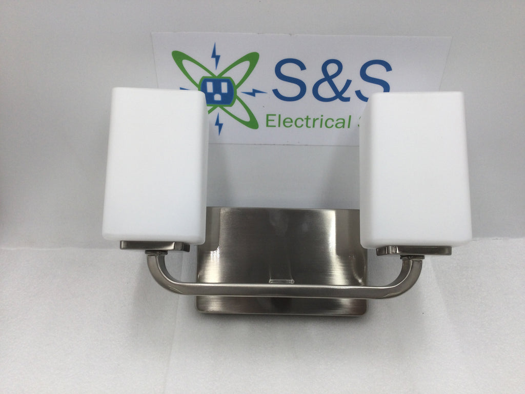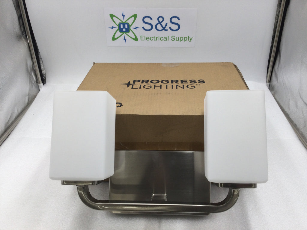 The Progress Lighting Cowan vanity light delivers refined illumination for bathroom spaces with its 14-inch width and dual-light configuration. Finished in brushed nickel, this fixture complements contemporary and transitional décor while providing balanced task lighting ideal for grooming areas. The P300369-009 model combines functional design with quality construction, making it a reliable choice for residential bathroom upgrades or new installations.