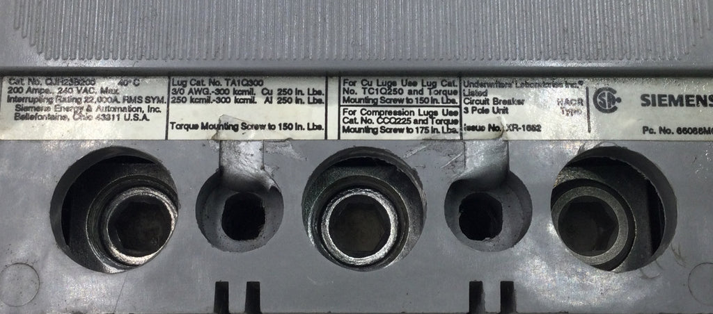 Siemens QJH23B200 200 Amp 3 Pole 240V Circuit Breaker w/Shunt Trip