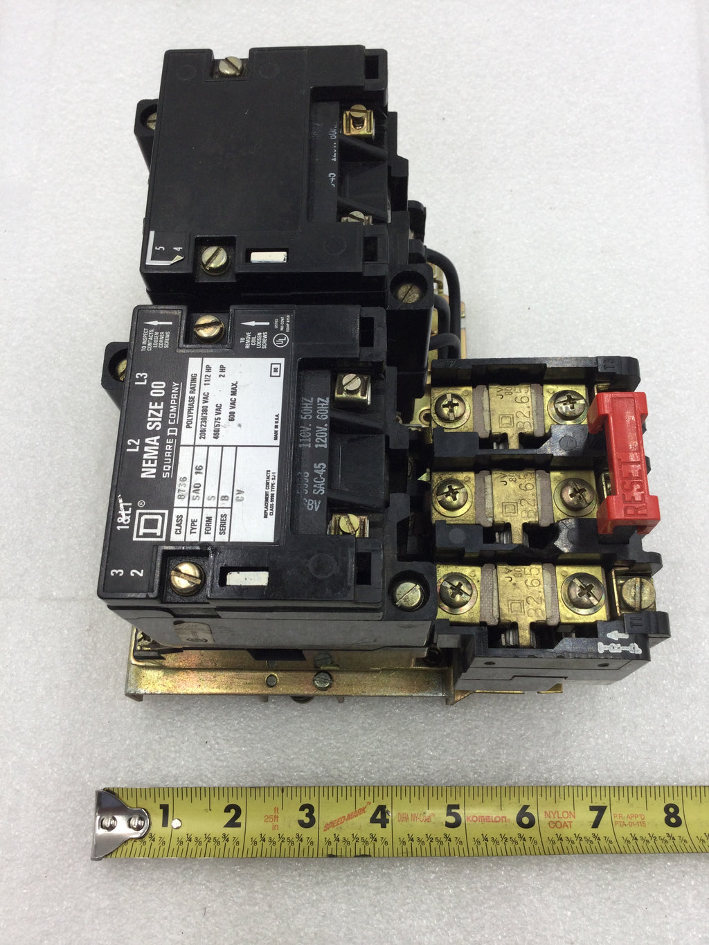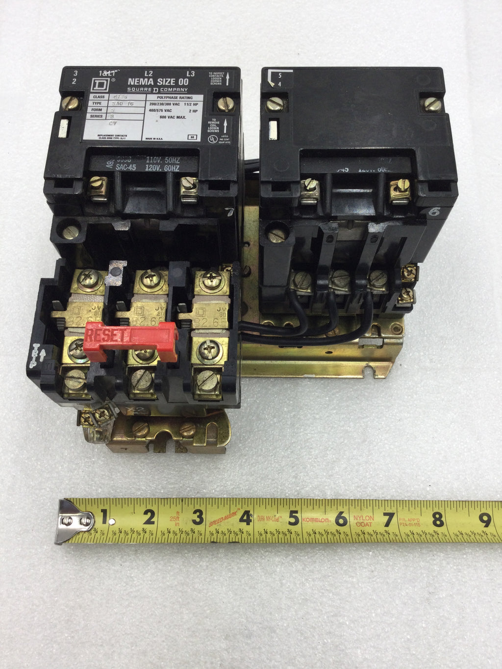 Square D 8736 SA016 Nema Size 00 Series B Reversing Starter/Contactor 3 Phase 200-575 VAC 1 1/2 to 2 HP with 120 VAC Coil
