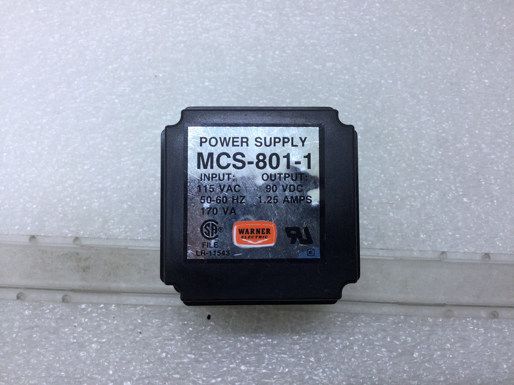 Warner Electric MCS-801-1 Power Supply Input: 115VAC 50/60Hz 170 VA Output: 90VDC 1.25Amps