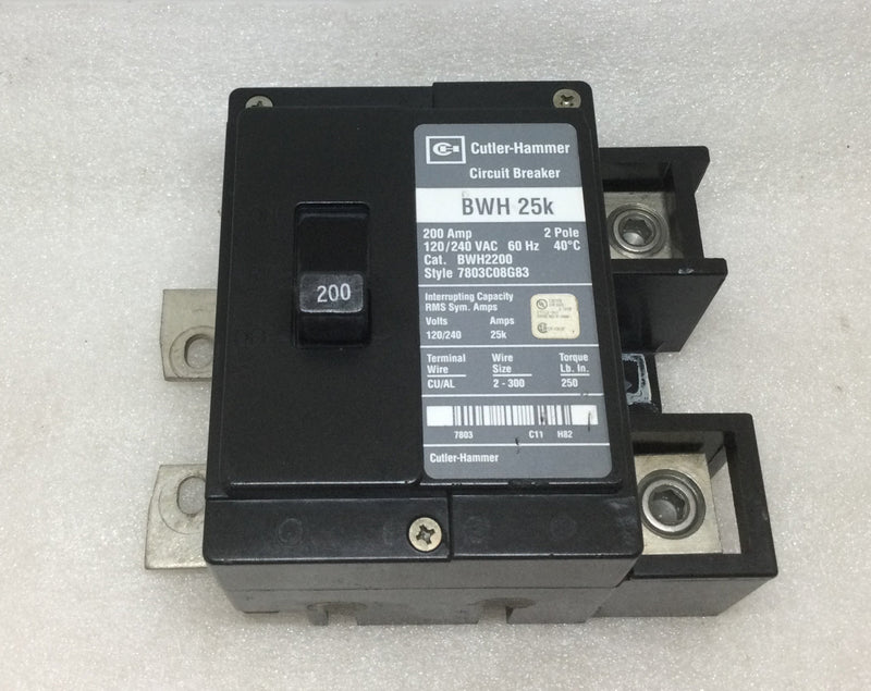 Eaton/Cutler Hammer BWH2200 BWH 25k 200 Amp 2 Pole 120/240v Circuit Breaker