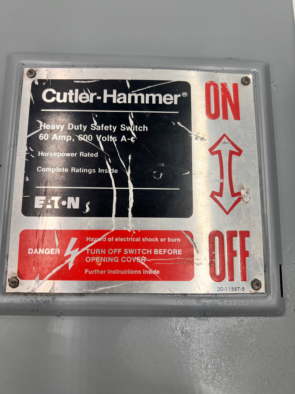 This Eaton/Cutler-Hammer Nema1 safety switch featuring a 60A, 3 pole design provides reliable and safe switching for up to 600VAC. With its fused construction, it offers added protection and security for electrical circuits. Perfect for industrial use, it ensures effective and efficient performance.