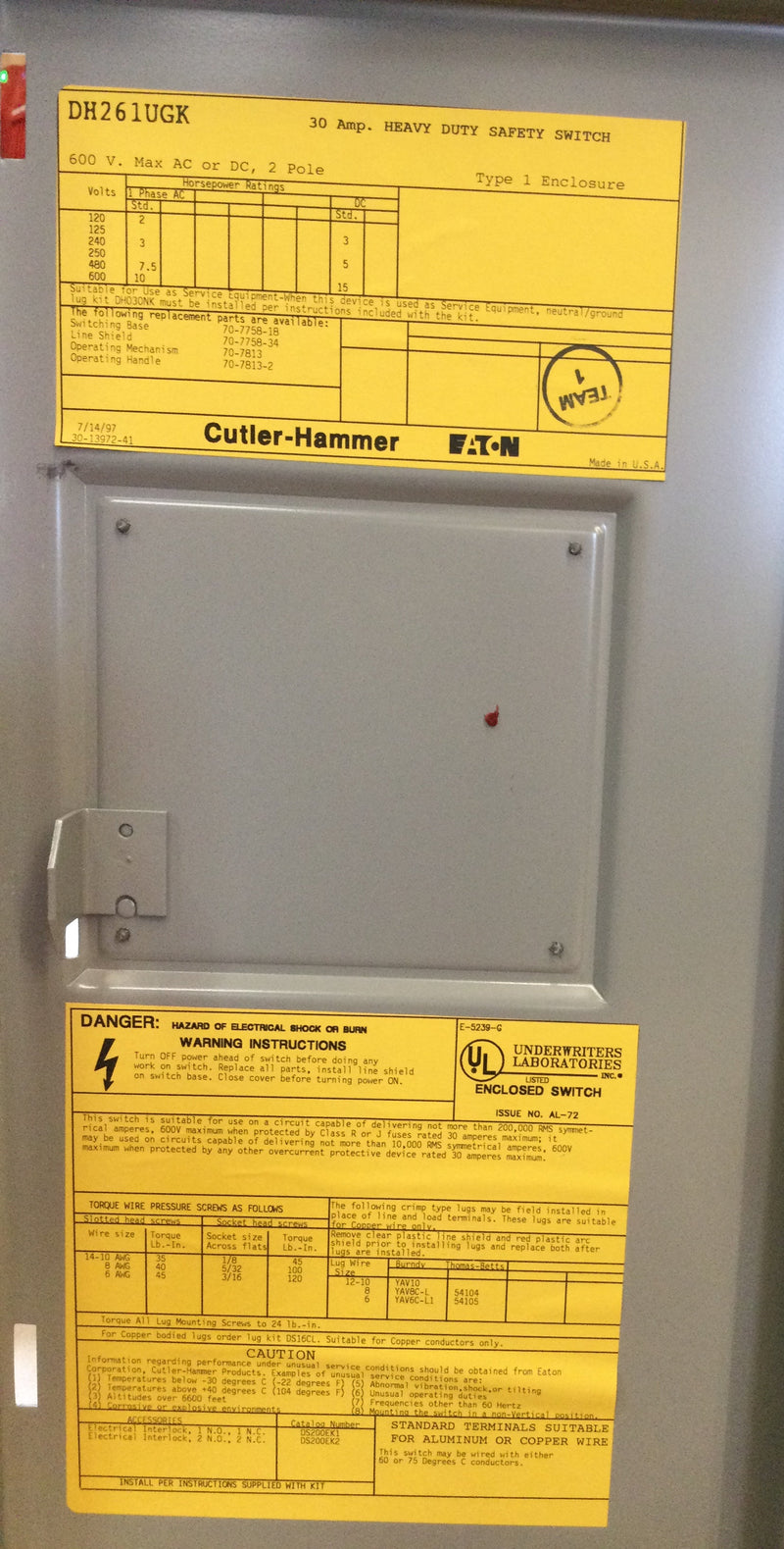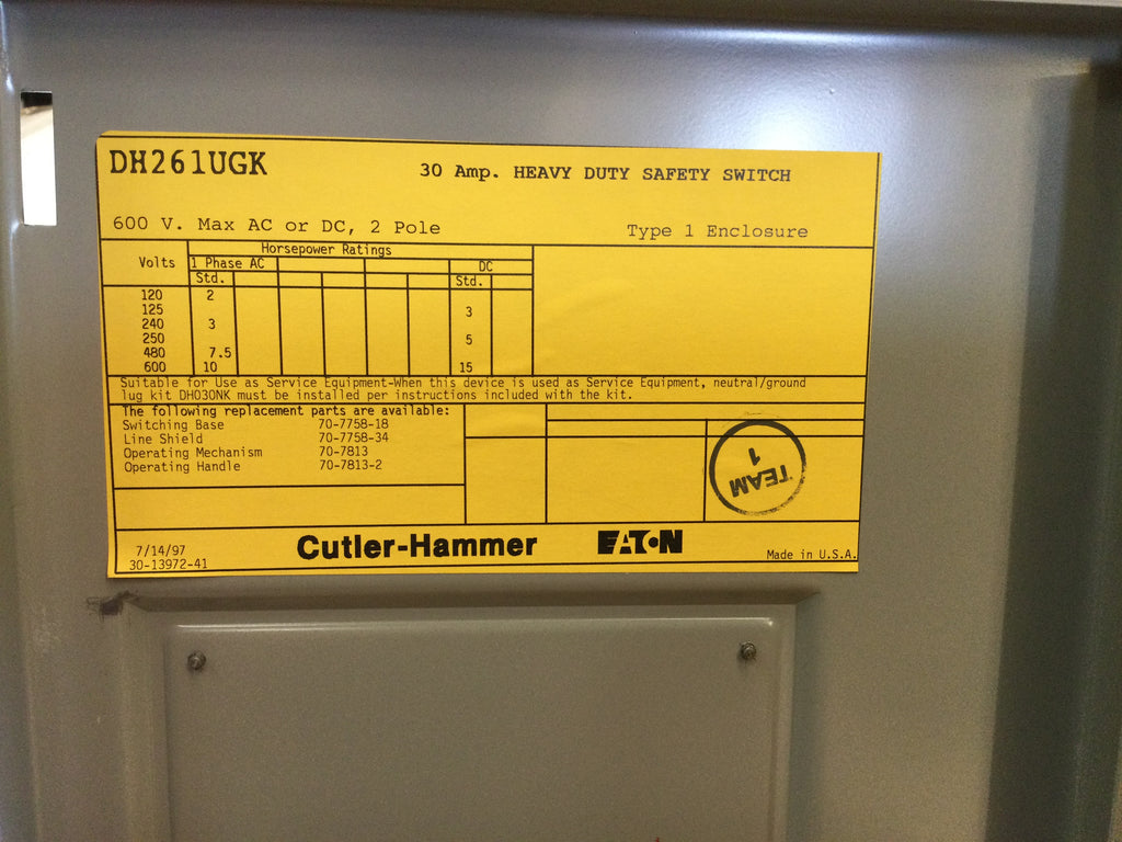 Eaton/Cutler Hammer DH261UGK 30 Amp 2 Pole 600V Non-Fusible Safety Switch