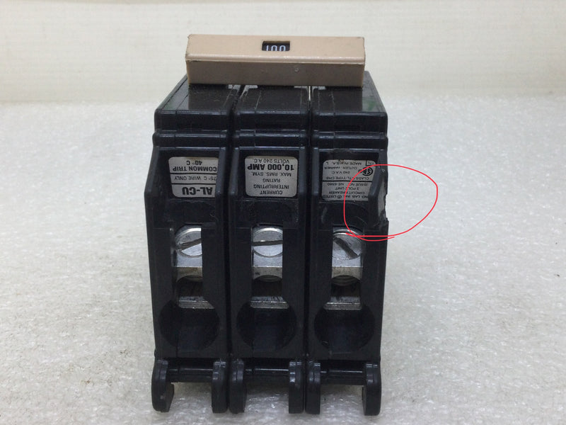 Cutler Hammer CH3100 100 Amp 3 Pole Circuit Breaker - Plastic Foot