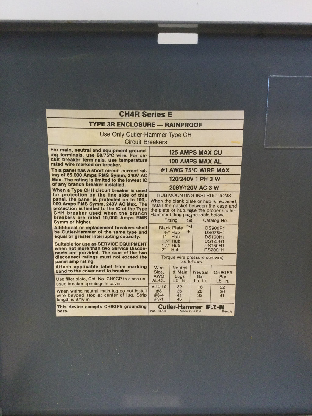 Cutler Hammer Ch4r 125a 120/240vac Single Phase Nema3r Enclosure New: Open Box