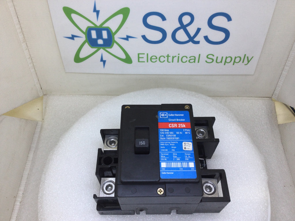 The Eaton Cutler Hammer CSR2150 is a 150 Amp, 2-pole circuit breaker designed for 120/240V applications. It includes a conversion kit, enabling easy installation and compatibility with various panelboards. This breaker ensures reliable circuit protection for residential or commercial electrical systems, delivering safety and performance where it’s needed most.