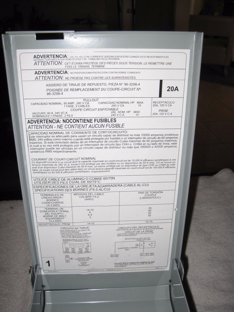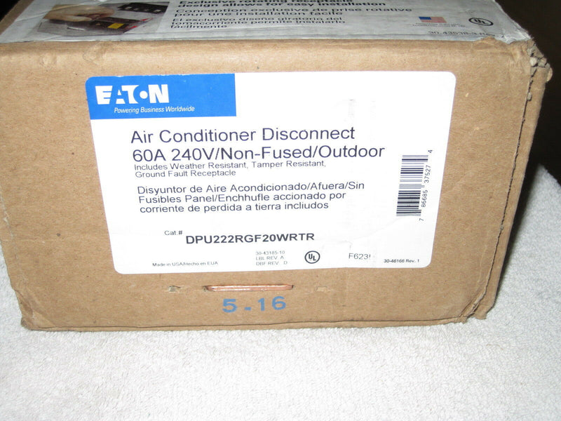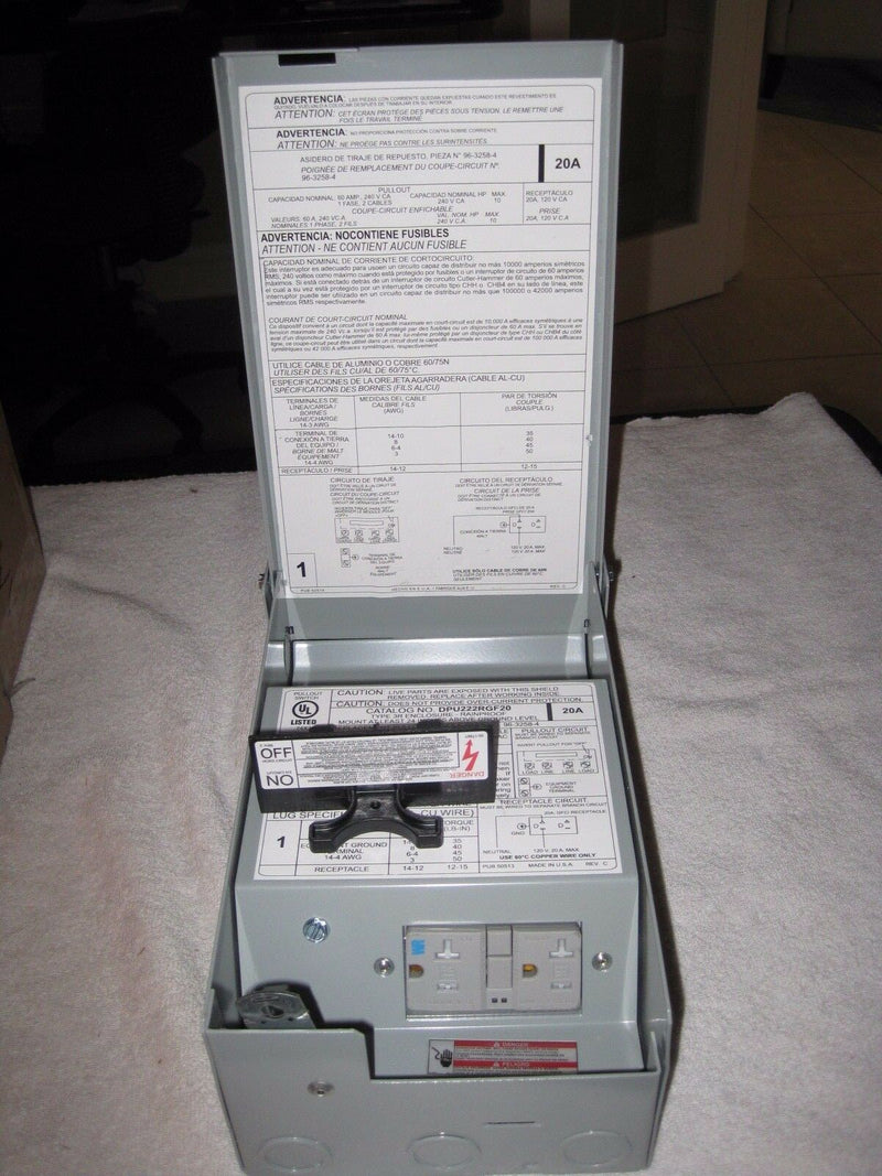 Cutler Hammer Dpu222rgf20wrtr Gfi Non-Fused Pullout120/240 Volt, 60 Amp 2 Pole