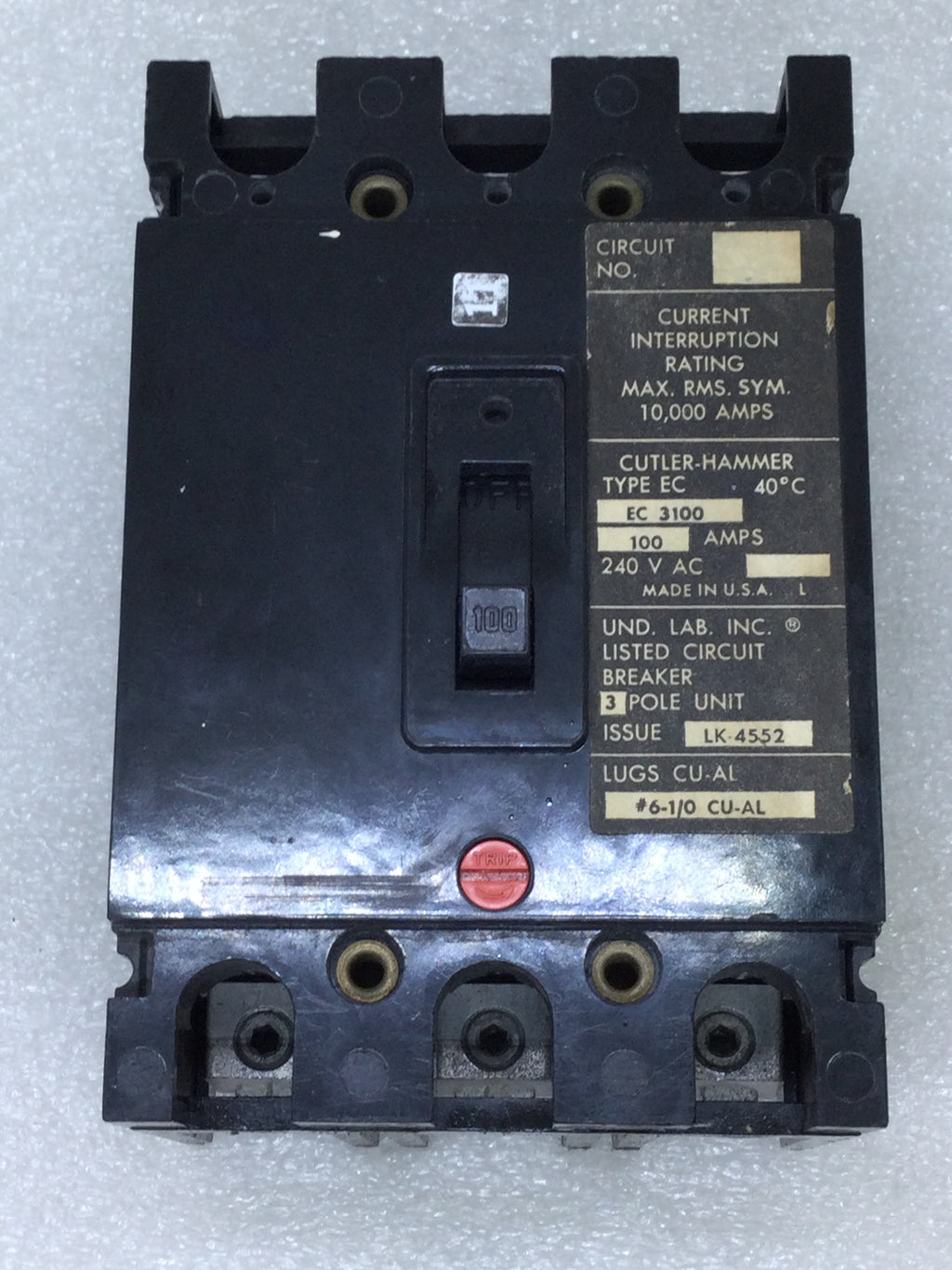The Cutler Hammer EC3100 is a 100 amp, 3 pole 240 VAC circuit breaker designed for optimal performance and safety. With its high amperage capacity and voltage rating, this circuit breaker is perfect for industrial and commercial applications. Its EC3100 features ensure reliable protection and efficient operation for your electrical systems.