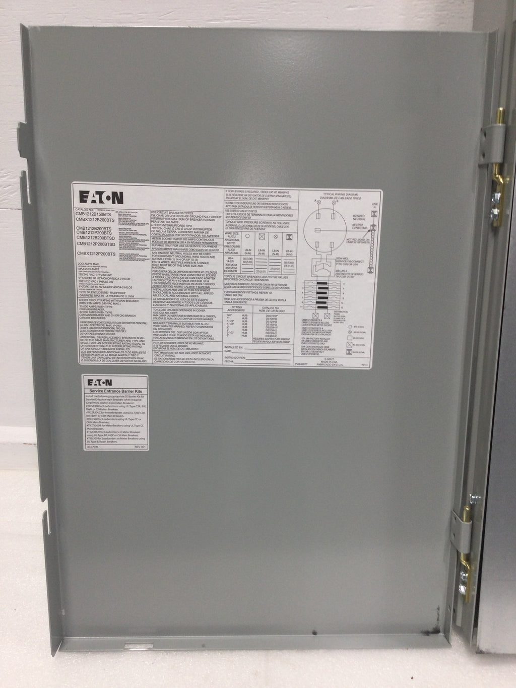 Eaton CMB1212P200BTS 200 Amp 12 Space 120/240 VAC Combo Meter/Load Center