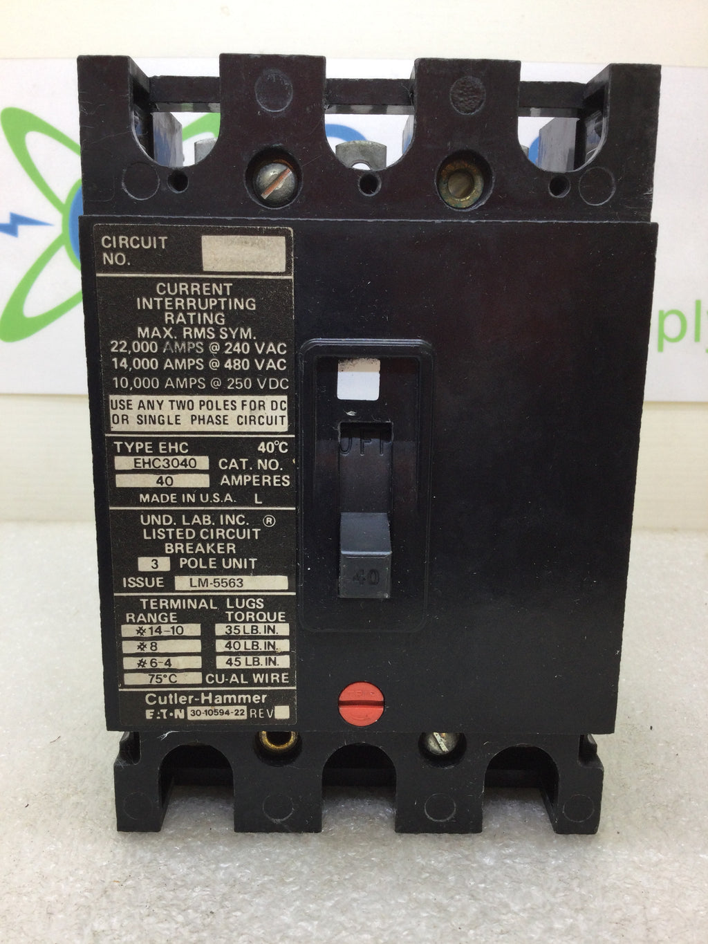 Eaton Cutler Hammer EHC3040 40 Amp 3 Pole 480Vac Circuit Breaker