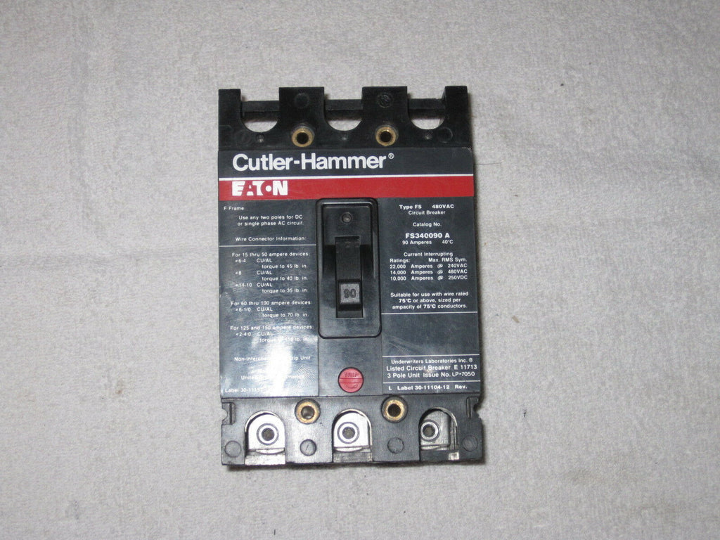 Eaton/Cutler Hammer FS340090A 90 Amp 3 Pole 480V Circuit Breaker