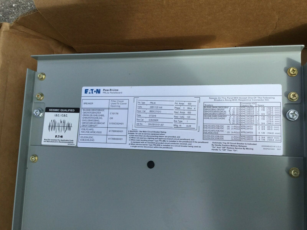 Eaton Cutler-Hammer Prl3a Eztv2090s 600 Amp Nema1 208/120v Panel,Cover & Can