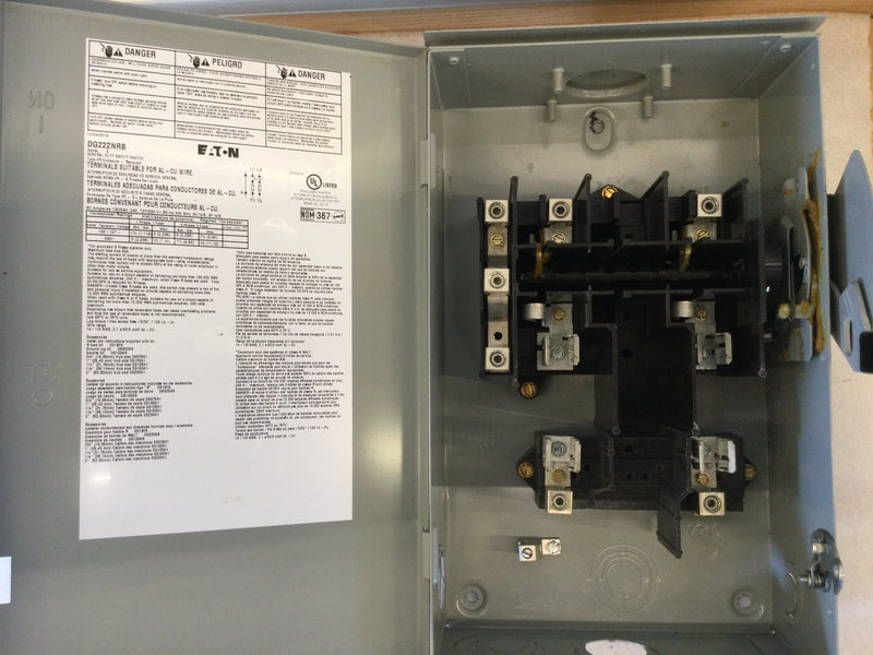 The Eaton DG222NRB single phase fusible safety switch offers protection against short circuits, overloads, and other instances of electrical hazard. The device is rated at 60 amps and 240VAC, and complies with NEMA3R standards. Easy to install and durable, the DG222NRB is a reliable and secure way to keep your systems safe.