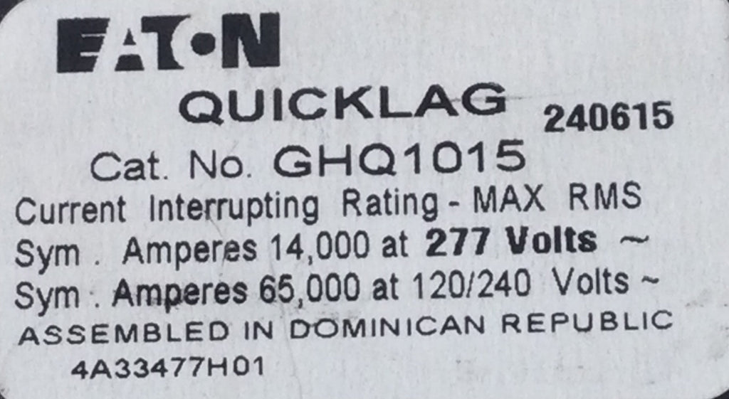 Eaton GHQ1015 15 Amp 1 Pole 120/277V Bolt-On Quick Lag Circuit Breaker