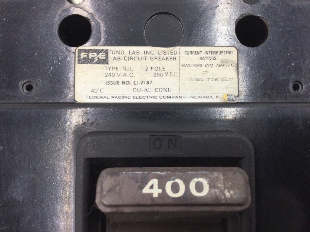 FPE Federal Pacific NJL621400 400 Amp 2 Pole 600V Circuit Breaker - Flawed