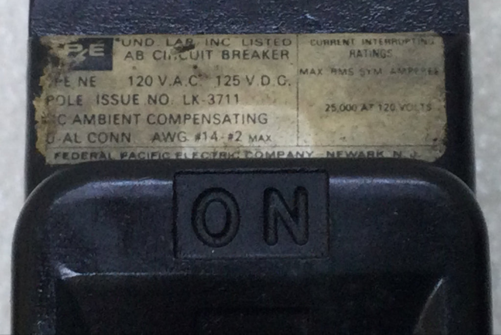 FPE/Federal Pacific NE113020 20 Amp 1 Pole 120V Circuit Breaker - Cosmetic Flaw