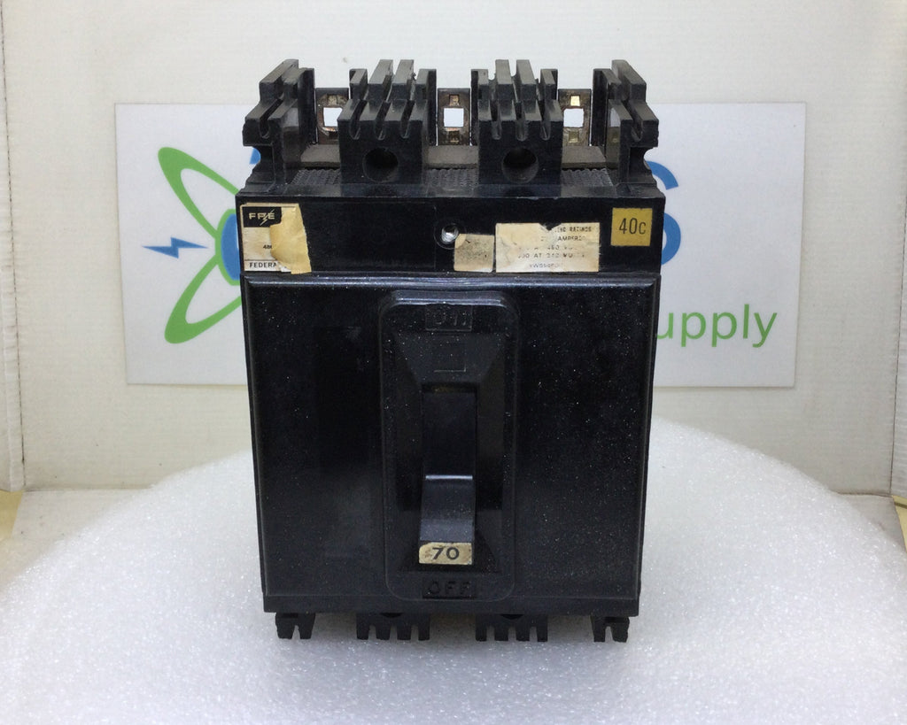 FPE Federal Pacific NEF431070 70 Amp 3 Pole 480V Circuit Breaker - Cosmetic Flaw