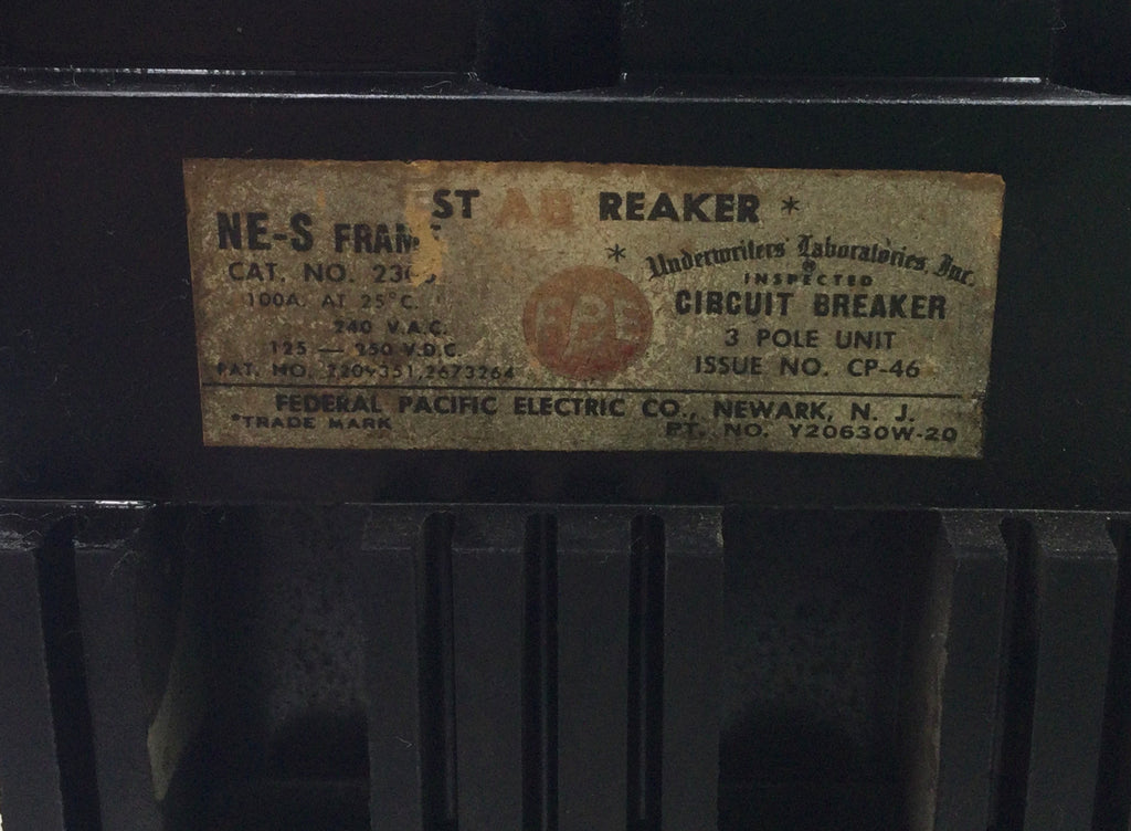 FPE NES2300/2300 100 Amp 3 Pole 120/240V Stab Circuit Breaker - Cosmetic Flaw