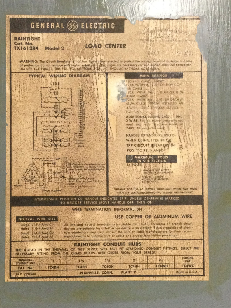 GE General Electric TX1612R4 Model 2 Panel Cover Nema 3R 20 5/8" x 12 5/8"