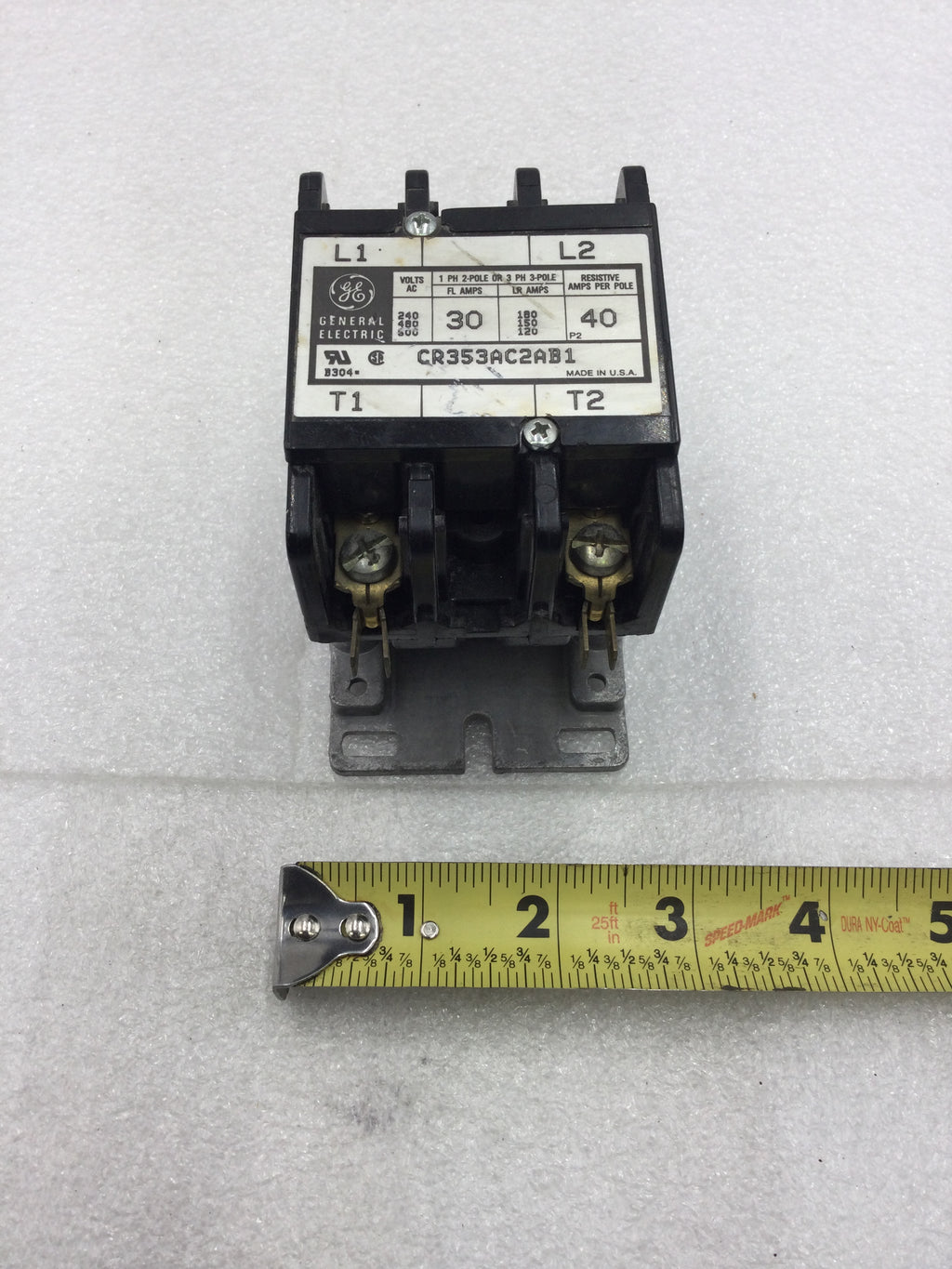 GE General Electric CR353AC2AB1 30 Amp 2 Pole 240-600 VAC Contactor with 208/240 VAC 50/60 Hz Coil