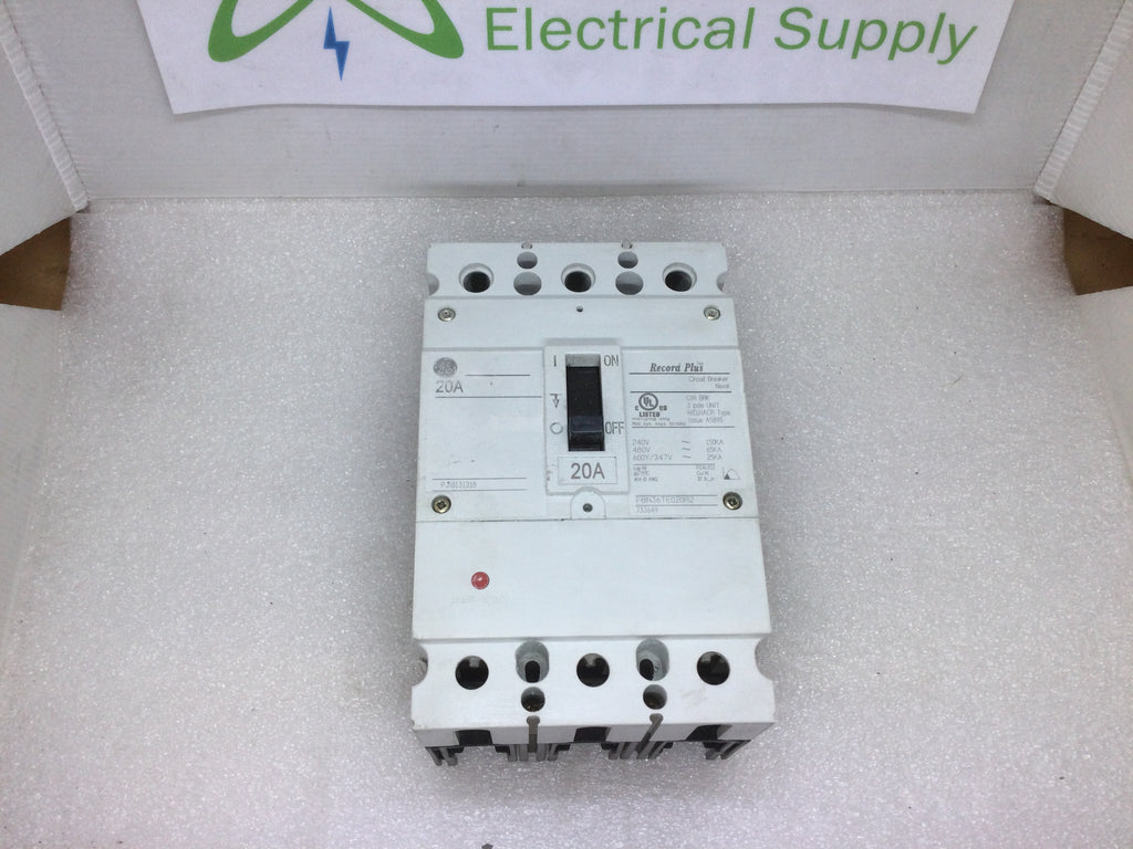 GE/General Electric FBN36TE020R2 3 Pole 20A 480VAC Record Plus Issue A5890 Circuit Breaker