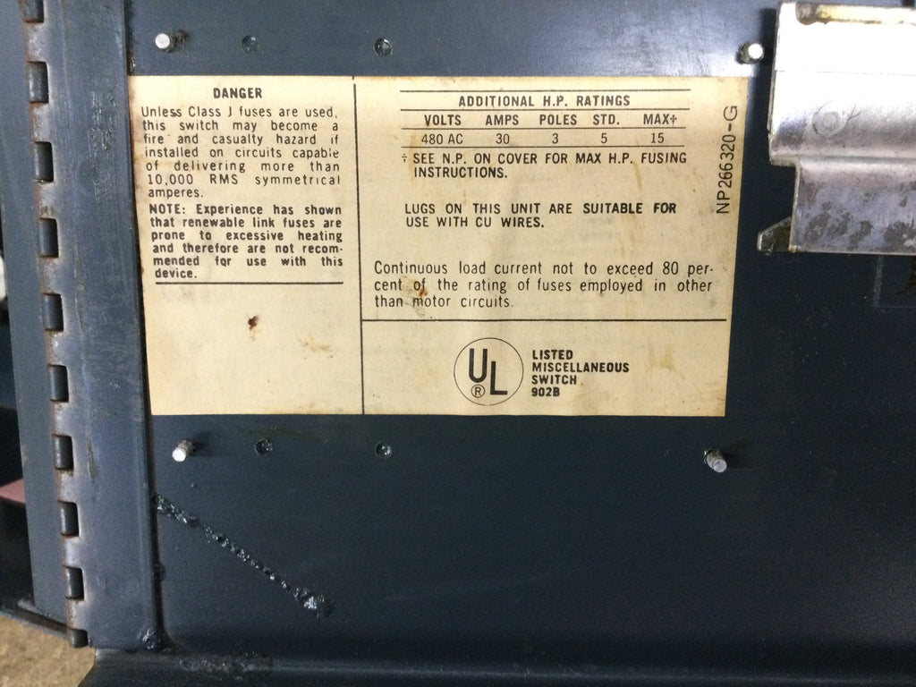 GE/General Electric QMR36IL/ Double box / QMR36I 30A 3 Pole 600VAC Fusible Disconnect/Safety Switch C43L576G15/ 343L576G26