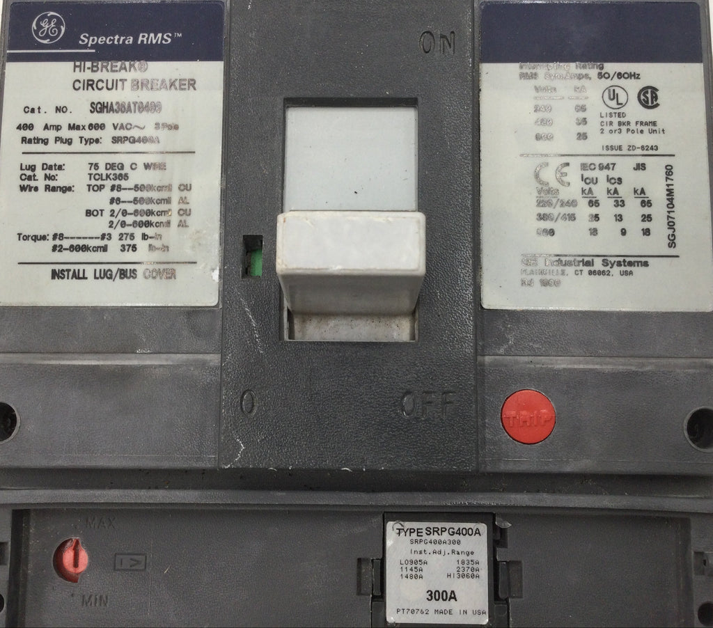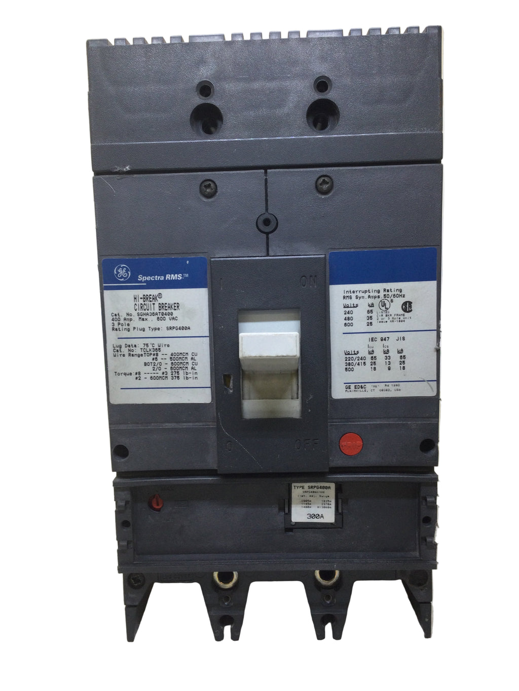 GE Spectra RMS SGHA36AT0400 400 Amp 3 Pole 600V Circuit Breaker w/300 Amp Trip